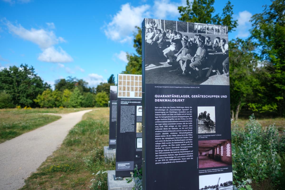 Das KZ-Außenlager Falkensee entstand 1943, um in den nahegelegenen Rüstungsbetrieben Arbeitskräfte aus ganz Europa auszubeuten. Bis zu 2 500 Männer waren dort untergebracht, sie litten unter Hunger, Gewalt und schwerster Arbeit in den Fabriken. Trotz dieser Bedingungen hielten die Häftlinge heimlich kulturelle und religiöse Zusammenkünfte ab, um sich gegenseitig Mut zu machen. Im April 1945 floh die SS, und sowjetische Truppen befreiten das Lager. Heute erinnert der Geschichtspark mit erhaltenen Fundamenten, Barackenteilen und Informationstafeln an das Leiden der Inhaftierten.
